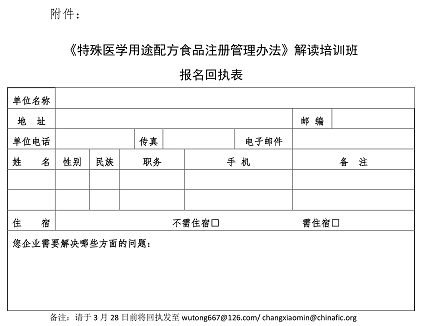 關于舉辦《特殊醫(yī)學用途配方食品注冊管理辦法》 培訓班的預通知