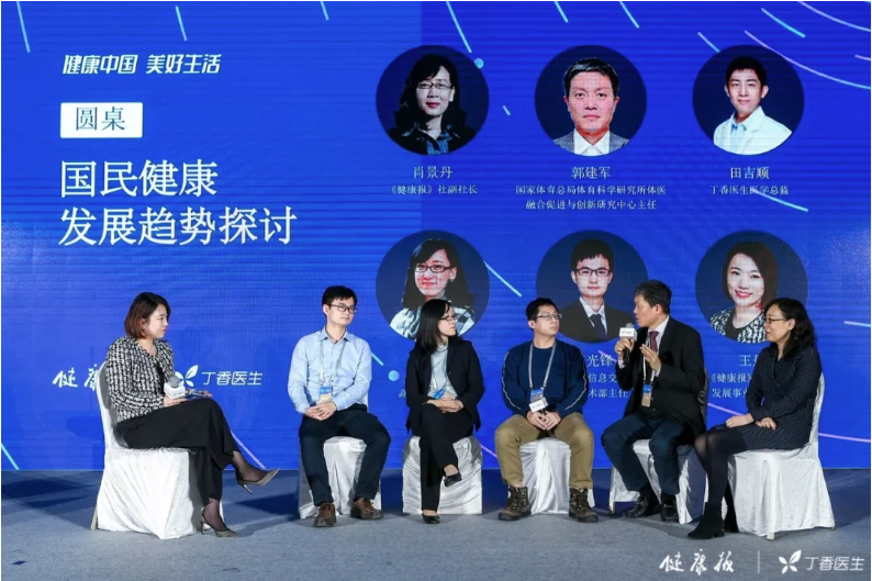 1 月 10 日,丁香園與《健康報》社聯合舉辦了2019 國民健康發展大會。會議以“健康中國 • 美好生活”為主題,首次發布了《2019 國民健康洞察報告》,眾多專家、學者也對國民飲食健康訴求、健康消費趨勢、國民健康發展趨勢進行了深入解讀、對話和交流??菩胖行目茖W技術部阮光鋒主任受邀參加了本次活動,并參與了《國民健康發展趨勢探討》的圓桌討論。