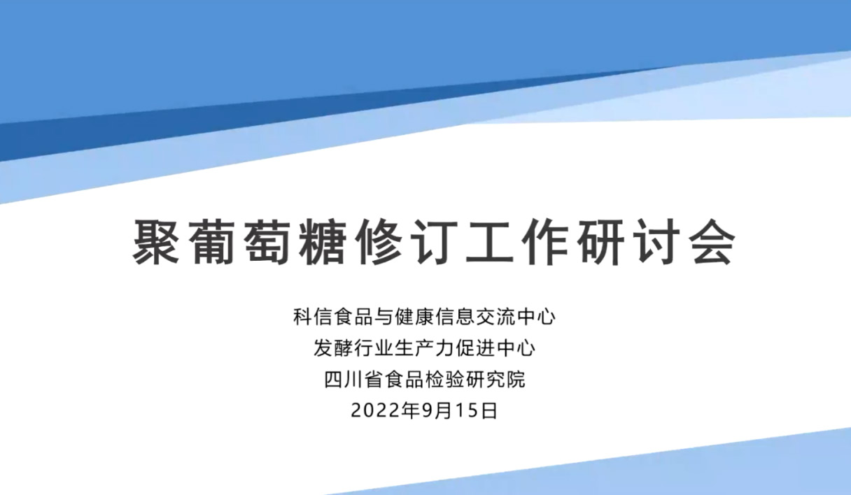 為做好《食品安全國家標準 食品添加劑 聚葡萄糖》(以下簡稱“《聚葡萄糖》”)的修訂工作,科信食品與健康信息交流中心(以下簡稱“科信中心”)于2022年9月15日下午召開標準草案討論會。來自國家食品安全風險評估中心、中國食品發酵工業研究院、發酵行業生產力促進中心 、四川省食品檢驗研究院等單位的專家和行業代表參加了會議。會議由科信中心法規事務部主任趙秀文主持。