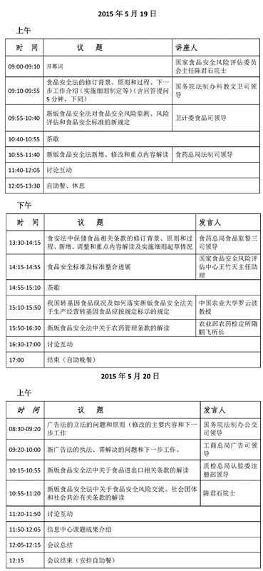 為了宣傳貫徹《中華人民共和國(guó)食品安全法》(以下簡(jiǎn)稱“食品安全法”)和《中華人民共和國(guó)廣告法》(以下簡(jiǎn)稱“廣告法”),科信食品與營(yíng)養(yǎng)信息交流中心(China Food Information Center,CFIC)擬定于5月19-20日在北京召開(kāi)“《食品安全法》和《廣告法》培訓(xùn)交流會(huì)”,屆時(shí)將邀請(qǐng)有關(guān)部門(mén)領(lǐng)導(dǎo)和專(zhuān)家對(duì)《食品安全法》和《廣告法》進(jìn)行科學(xué)解讀。現(xiàn)將會(huì)議有關(guān)事項(xiàng)通知如下: