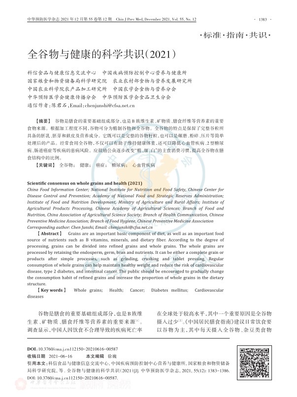 全谷物與健康的科學(xué)共識(shí)(2021)