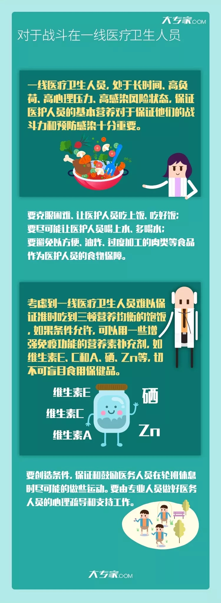 如何保證健康的身體投入這次戰斗,是能否取得勝利的重要因素。大專家.COM發起人之一、中國工程院院士,國家食品安全風險評估中心研究員、總顧問陳君石院士表示:除了早期發現、有效隔離外,還要規律生活,科學飲食和適當活動。