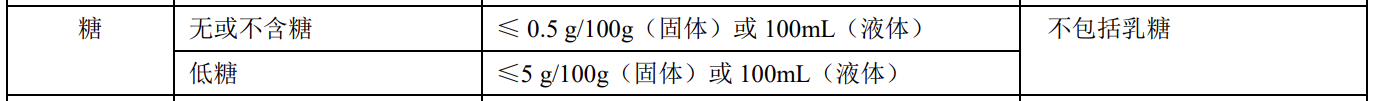 按照我國營養(yǎng)標(biāo)簽標(biāo)準(zhǔn)規(guī)定,如果食品中糖含量≤5g/100g(或100ml),屬于“低糖”食品,糖含量≤0.5g/100g(或100ml),就屬于“無糖”食品。