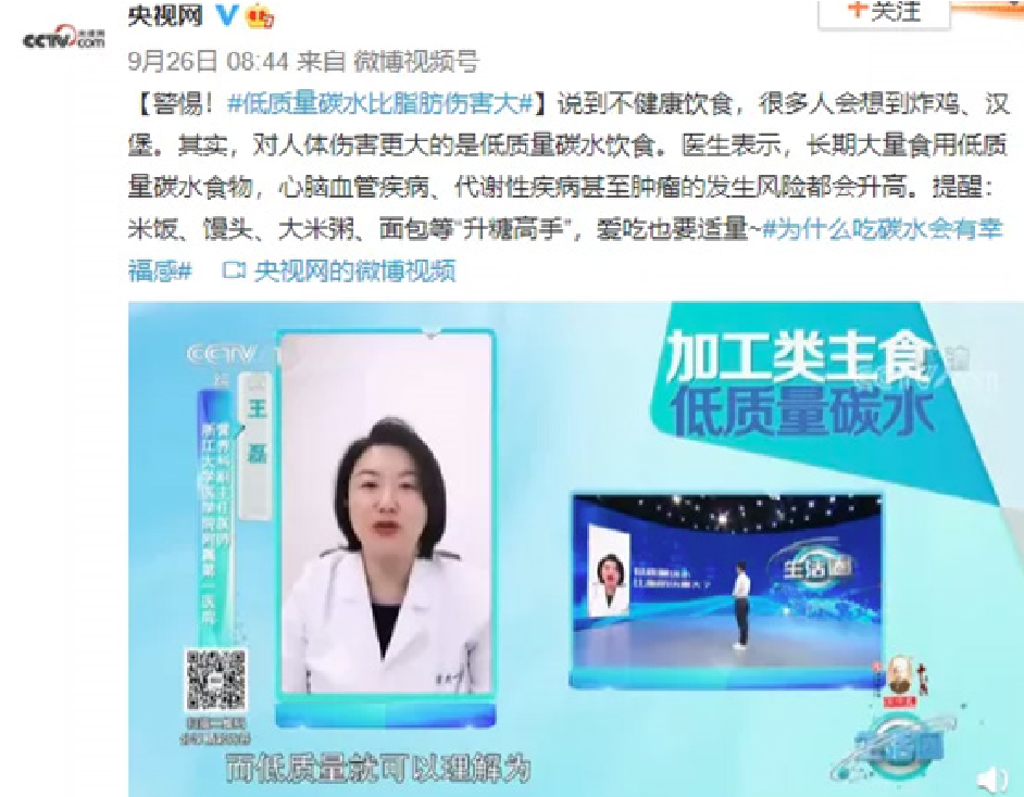 最近央視一個節目中就有專家指出,低質量碳水比脂肪傷害大。低質量的碳水就包括了我們平時吃的白米飯、白饅頭、大米粥、面包等主食。