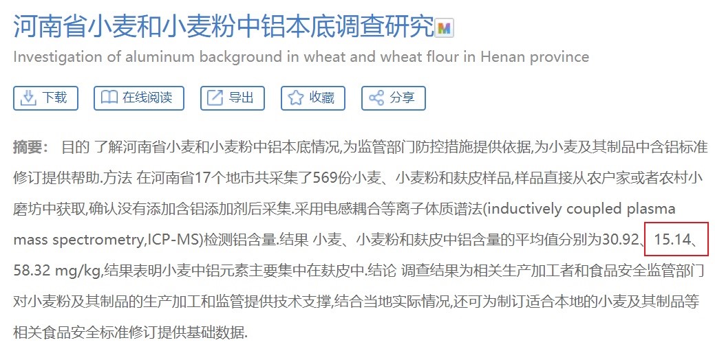 鋁是地殼中含量最高的金屬元素,因此天然的存在于環境、水和各類食物中,嬰幼兒輔食中用到的小麥粉、蔬菜粉等也不例外。一些科學研究對小麥及小麥粉中本底的鋁含量進行過測定,比如下圖的研究。所以嬰幼兒輔食中的鋁顯然是天然本底,而不是生產過程中額外添加。