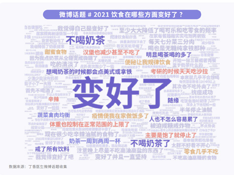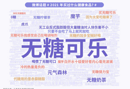 第三,2021的食品熱詞是“無糖飲料”,人們提到買得最多的品類是無糖飲料。而很多人開始選擇“無糖飲料”,其實也跟身材困擾有關(guān),不少人因為認為“無糖飲料”能減肥、能幫助自己緩解身材困擾。