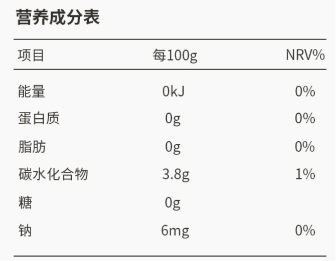 2. 看營養成分表。營養成分表會標注每100毫升產品中碳水化合物的含量及能量情況。部分食品或飲料的營養成分表會單獨標注“糖”的含量,這有助于消費者判斷所購買產品是否真正為“0糖”。