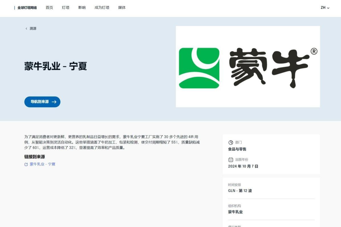 10 月 8 日,世界經濟論壇(WEF)公布最新一批“燈塔工廠”名單,蒙牛集團旗下全數智化超級工廠——蒙牛寧夏工廠成功認證...