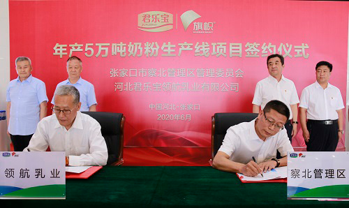 6 月 28 日,君樂寶旗幟奶粉二期領航乳業年產 5 萬噸奶粉生產線項目在張家口市察北管理區正式開工。項目建成后旗幟將具備年產 8 萬