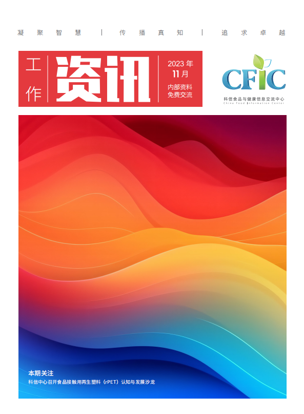 本期關注:科信中心召開食品安全信息交流會暨科信中心 2023 年工作總結會議,促進多方協同,共同推進合理膳食行動,“互利合作 共話 rPET 未來”科信中心舉辦 rPET 塑料認知與發展主題沙龍...