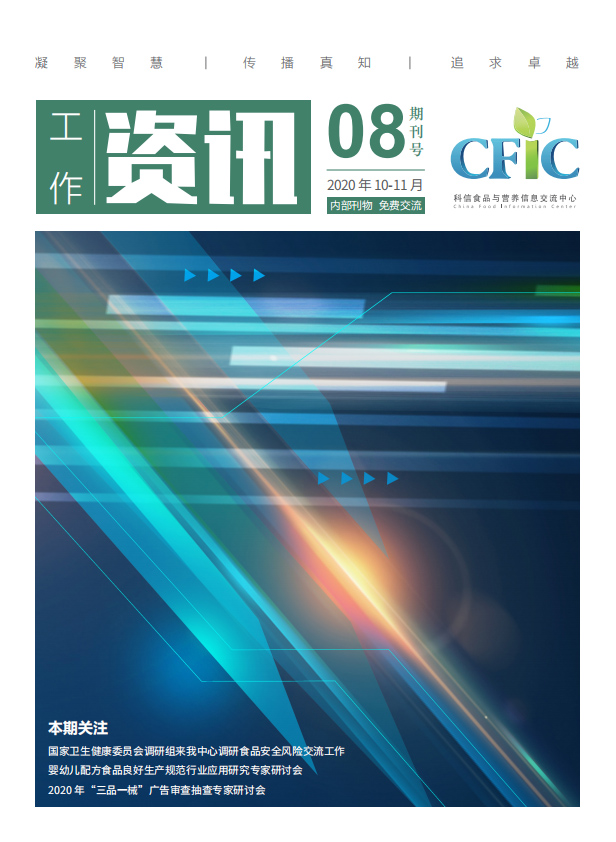 本期關注:國家衛生健康委員會調研組來我中心調研食品安全風險交流工作,嬰幼兒配方食品良好生產規范行業應用研究專家研討會,2020 年“三品一械”廣告審查抽查專家研討會...